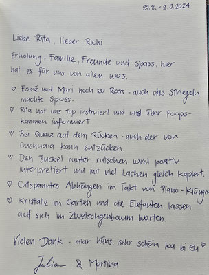 Bei Euch zu landen war pures Glück für mich! Danke für den überaus herzlichen Empfang, die Oase der Ruhe und die Klänge vom Flügel – einfach wunderbar! Julia