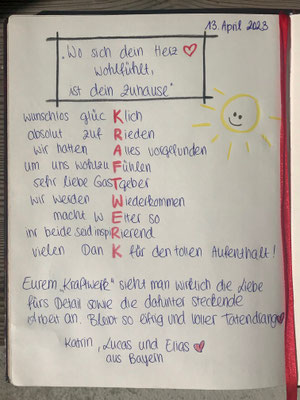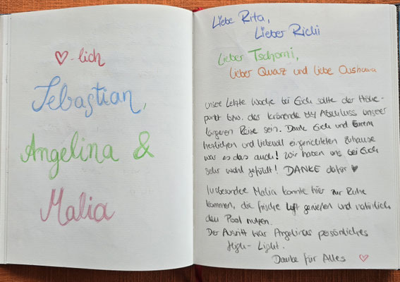 Wieder ist ein Gästebuch voll geworden. Es ist ein reichhaltiges Sammelsurium von schönen und wertschätzenden Beiträgen von unseren zufriedenen Kunden. Hier ein paar schöne Beispiele: